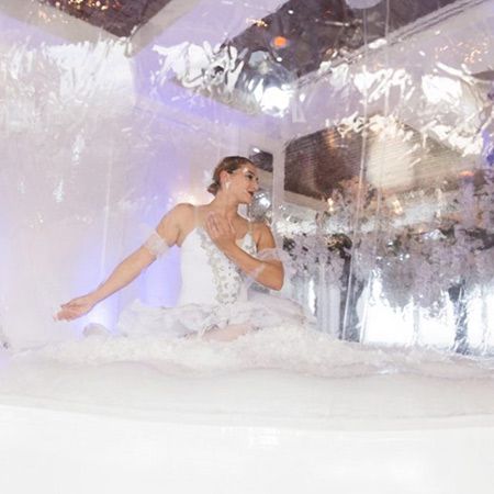 Showcase ballet performers or Christmas holiday-themed dancers within the snow globe for extra excitement and entertainment value