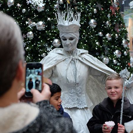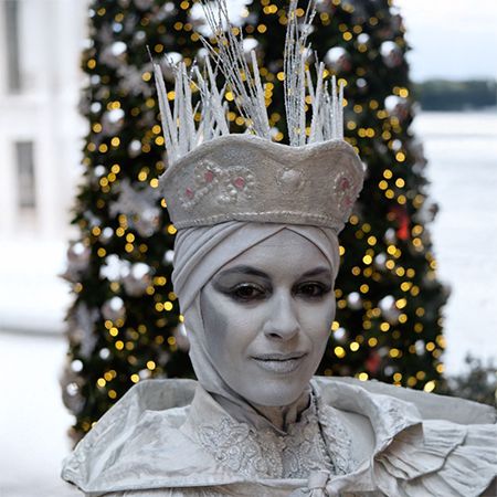 This dazzling Snow Queen Living Statue is available for booking as a solo living statue that will add a bonus wide eyed element. Bridging the cold and snow filled mountains of our snow queen's winter wonderland with your fun filled event, our beautiful winter themed entertainment experience is fun and interactive. She adds visual interest and unique talking points to your special event or social gathering, making your event an unforgettable engagement. The perfect winter themed entertainment experience for private parties, festivals, family days, themed occasions, gala dinners, street performances, and more.