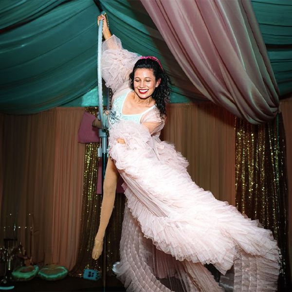 Even experience the elegance of her champagne aerialist routine, where she serves drinks from the air, adding a unique touch of luxury