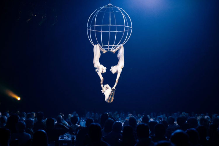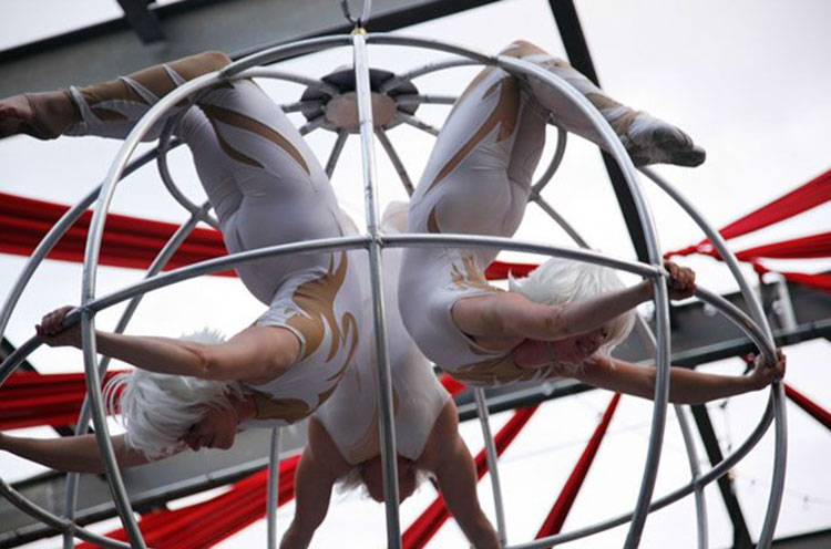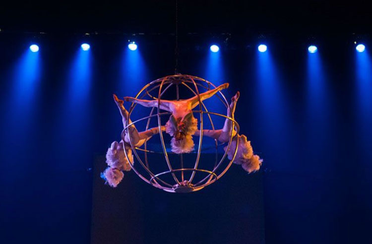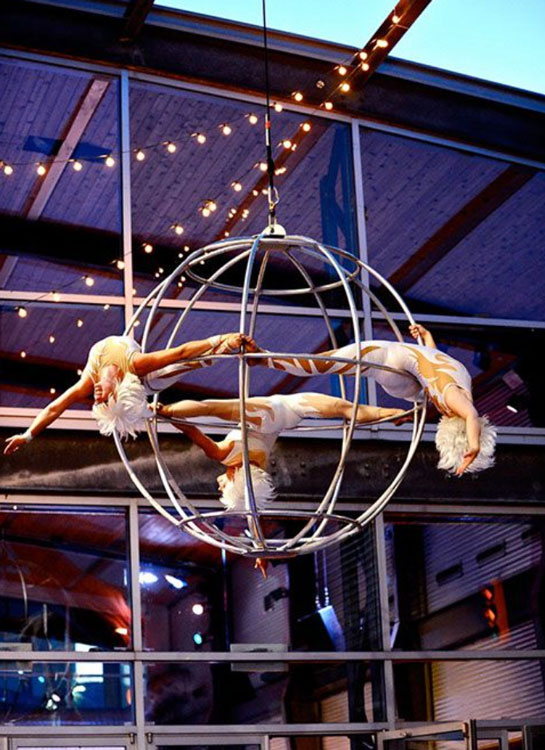 Performing from inside a sphere apparatus, these event aerialists create an enchanting atmosphere that is a delight to watch and guaranteed to add a stunning addition to every event.