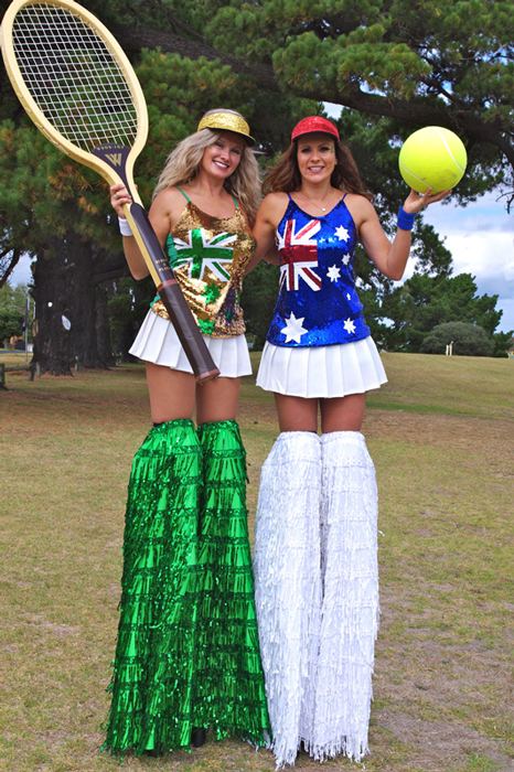 The superb Sports Themed Stilt Walkers have been seen at various events all over Australia including the Australian F1 in Melbourne, Melbourne Cricket Grounds, Collingwood Football Club, Greater Western Sydney Football Club and more
