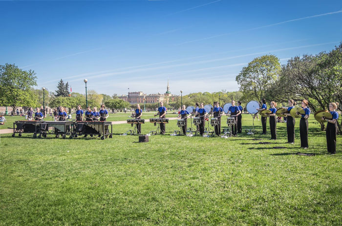 Our St Petersburg Drumline has a passion for drumming and live performances. There are multiple members to the group offering flexible and scalable line-ups to suit the event type. This can range from a handful of marching percussionists to a huge static drumline complete with xylophones, cymbals and more. Their eclectic range of percussive instruments means that the St Petersburg Drumline can perform a wide range of songs that have rhythmic melodies. Their sound is very modern, including cover songs, but stays true to the classic marching band style.