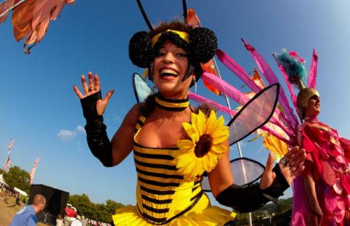 - Colourful Carmen Mirandas with pineapple maracas