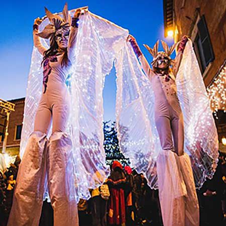 Our roaming stilt walkers can greet guests at the entrance to your event, participate in a parade or provide eye-catching walkabout entertainment
