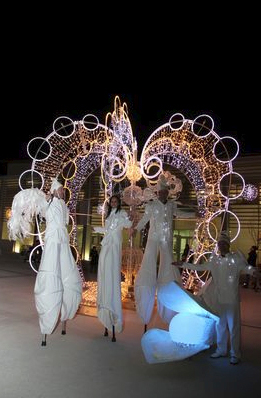 The LED stilt performers will mix and mingle and interact with guests and entertain as they go. They are available with Light Jugglers, acrobats and a contortionist inside a giant bubble.