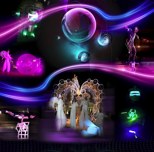 Available with light jugglers, acrobats & contortionist in a giant bubble