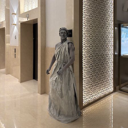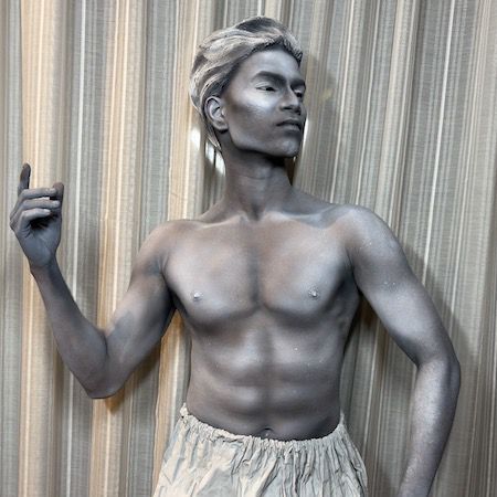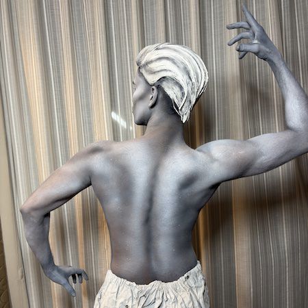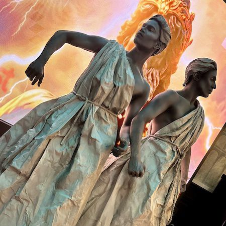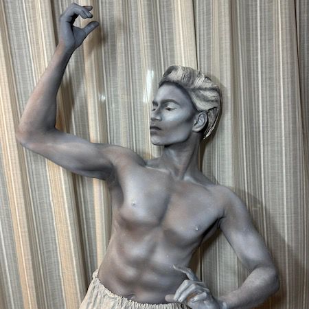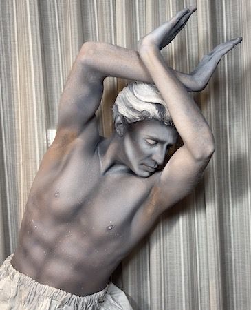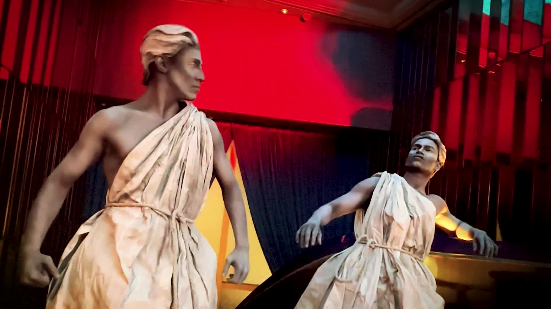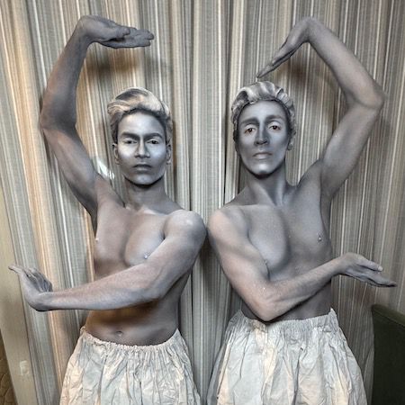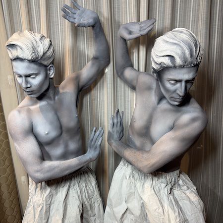 Dressed in detailed costumes with stone-effect wigs and body paint, the performers appear as hyper-realistic human statues and living works of art