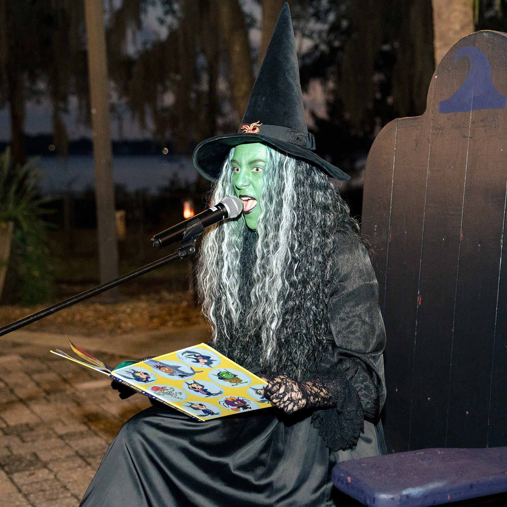 Our Witch-themed storytelling character is available globally, bringing spooky stories to your Halloween events worldwide