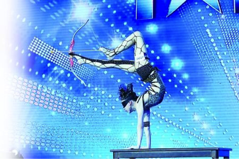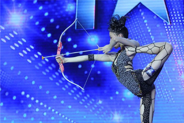 中国达人秀第五季人气选手, 蒙眼倒立双脚射箭, 钢铁腰柔术女侠尹素丽。