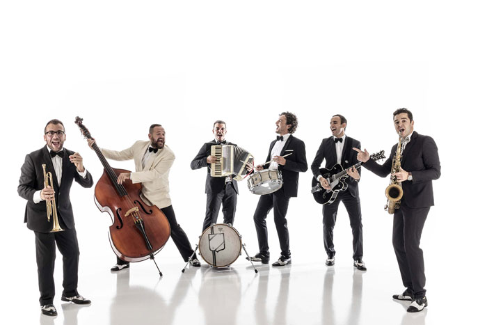 This Italian swing band offers excellent value and performs with a range of instruments including a trumpet, double bass, electric guitar, saxophone and drum kit. Playing a mix of Jazz, boogie and rock and roll our Jazz and swing style Jazz band will take you on a beautiful journey through Italy using rediscovered melodies from the past. Inspired by Renato Carosone, Fred Buscaglione, Domenico Modugno, Italian-American crooners and the Dolce Vita our Italian swing band aims for everybody at their gig to have fun!