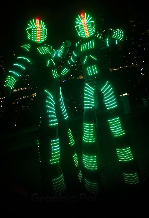 The Sydney LED Robots on Stilts are able to provide excellent interactive entertainment for themed events, live gigs, festivals, corporate functions, product launches and conventions.