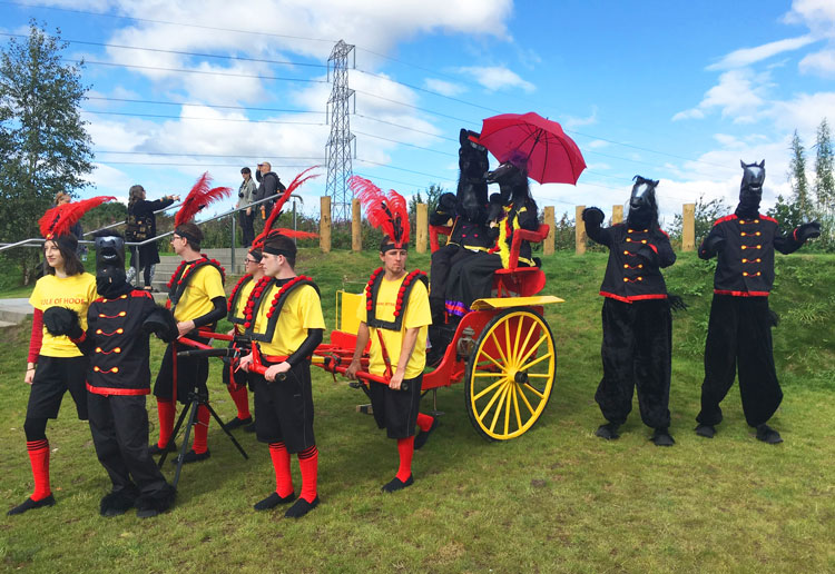 Transporting guests into a topsy turvy world this family friendly walkabout horse character act  provides a fantastically fun dynamic at every event as they are treated like royalty by their humans being chauffeured about in a human-drawn carriage, meeting and greeting your guests with an upper class air about them.