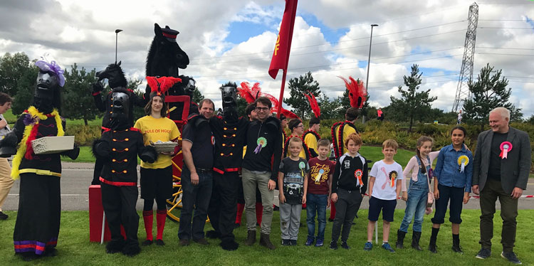 Awarding humans with rosettes as they perform gymkhana for equine entertainment for the talking horses entertainment. Guaranteed to appeal to guests of all ages, these lovable walkabout horse characters boast a diverse and unique entertainment option that is perfect for equestrian events, garden parties and public spaces where they can cause much hilarity amongst onlookers and passers by.