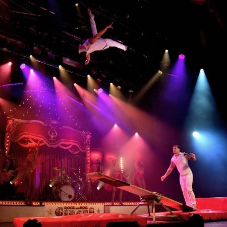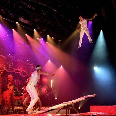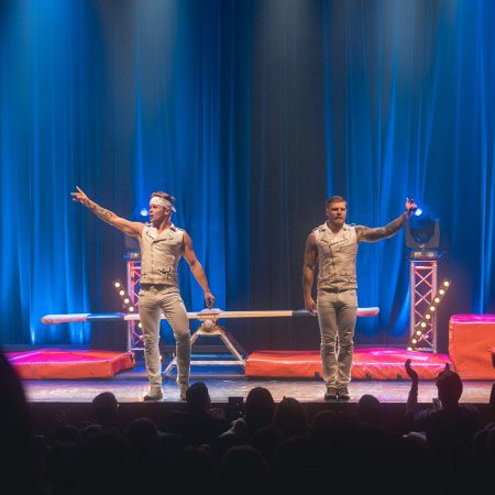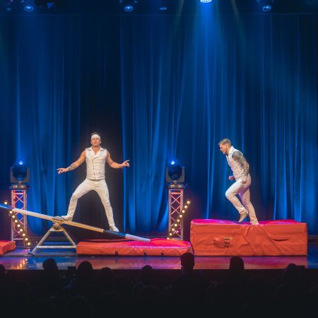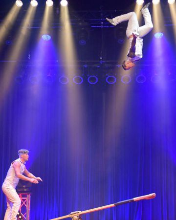 For this traditional circus act, our daring performers catapult each other high into the air to perform jaw-dropping twists and jumps