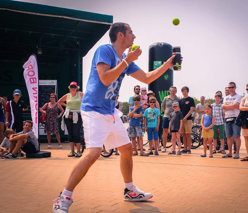 Previously a successful basketball juggler who entertained NBA audiences around the world, Tennis Entertainer Antoine gained prominent exposure on the 2012 edition of Belgium's Got Talent. Though unable to land the top spot, the experience allowed him to reach a wider audience. Tennis Entertainer's charm and juggling skill, coupled with his humour has seen him be regularly invited to perform at tennis events around the world including Grand Slam Roland-Garros, the Monte-Carlo Rolex Masters, the BNP Paribas Zurich Open and the Barcelona Open Banc Sabadell