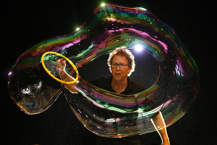 This bubble artist has been creating bubble shows for audiences of all ages to enjoy since 1983, and after three decades he is still in the business of delighting audiences with his bubble creations!