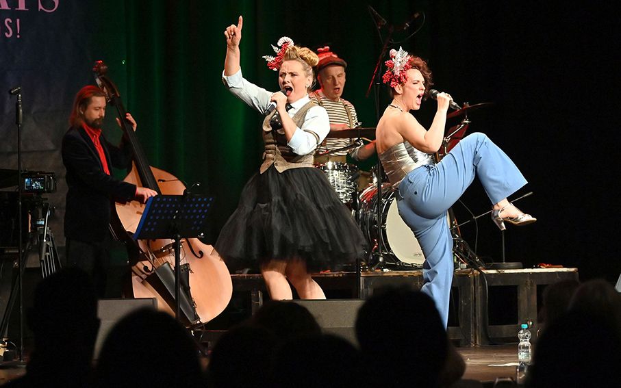 " ith their extravagant show in the 6er Combo, the ladies took the invited guests of a closed event as part of the Ludwigsburger Schlossfestspiele on a musical journey through time from the 20s to the present day: a successful mix of swing and pop hits with earwig potential. The audience was thrilled - standing ovations! "