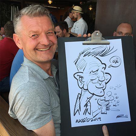 This novelty caricaturist from Madrid can travel anywhere to entertain and amaze guests with his rapid portraits created in coloured chalk