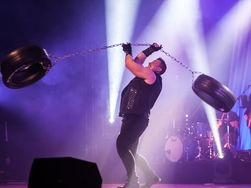 This strong man juggling act is an unusual fusion of disciplines and is a unique entertainment option