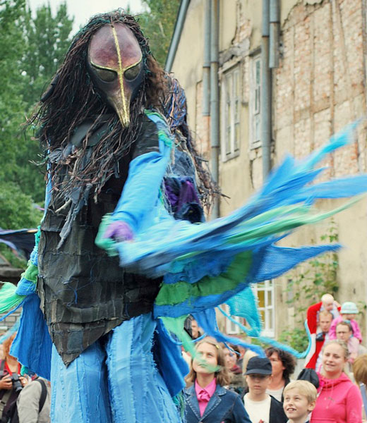 These long-legged bird-like creatures will intrigue and fascinate spectators as they wander amongst the crowds, chirping, croaking, and performing a humours choreographed ‘bird dance’.