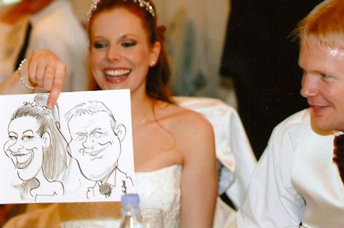 Having a live caricaturist at your event creates a fun and exciting atmosphere that will have guests laughing and smiling until well after the night is over. Paul has been working as a live caricaturist for more than 15 years, creating amusing pieces in just minutes at a range of events including corporate functions, weddings, parties, exhibitions and promotions. Working predominantly in black and white, Paul can whisk around your party adding a humorous element, interacting with guests, creating laughter and lasting memories. Paul can also work in colour, which is ideal for smaller gatherings as the caricatures inevitably take a little longer. He is highly experienced at making guests feel comfortable and at ease and has worked at event at prestigious venues such as the Savoy Hotel, Madame Tussaud’s, HMS Belfast, St. James’ Palace, The BT Tower, Cafe de Paris, Cafe Royale, Natural History Museum, Leeds Castle, The Wardorf Hotel and The Orient Express.