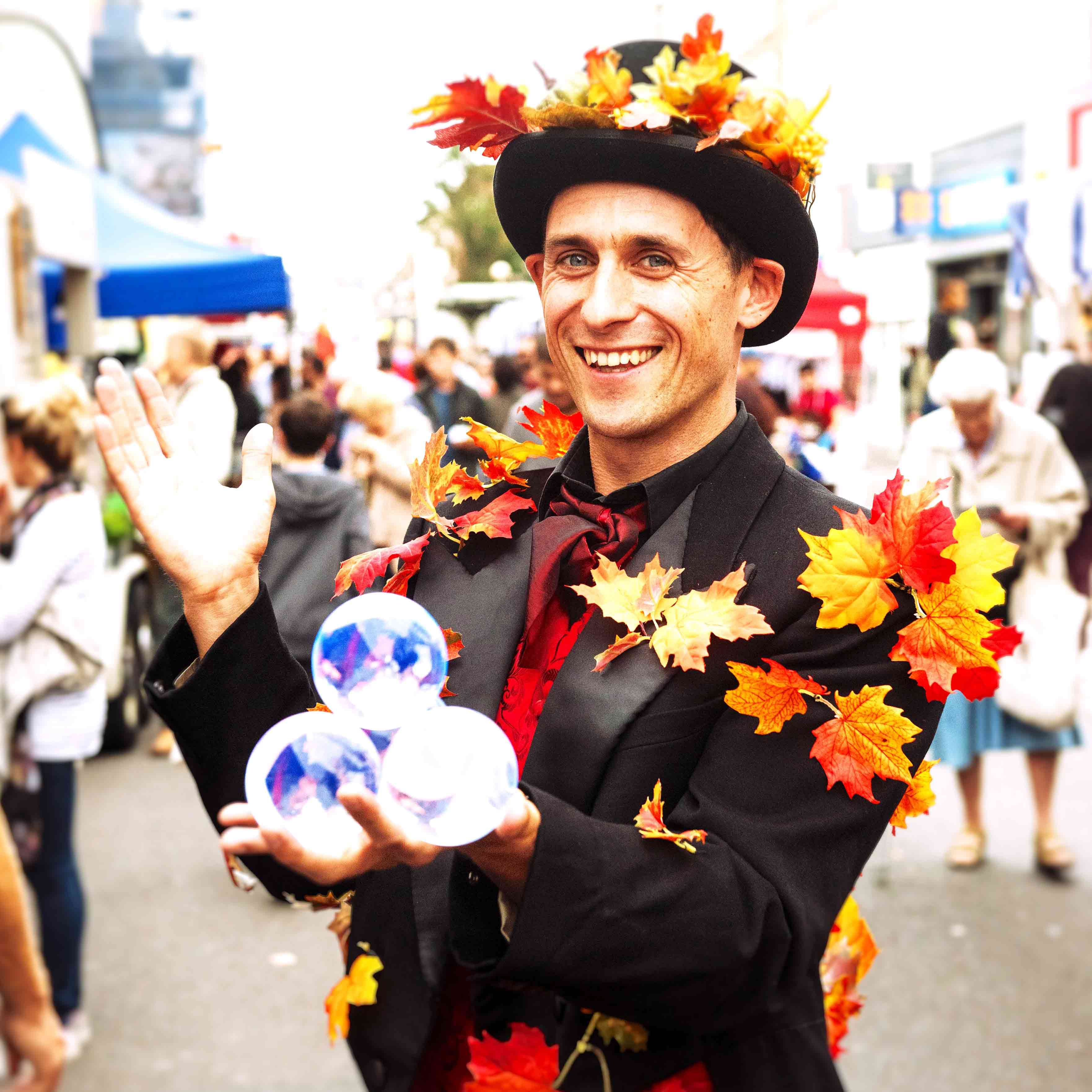 Boasting a full range of costumes to suit your theme, this versatile contact juggler is happy to adapt his costuming to meet your needs