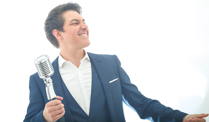 He can perform solo with along to high-quality backing tracks or with his live backing musicians for a full-band experience. For more laid back events requiring something a little more subdued, the Jazz singer can be booked to sing with a solo pianist.