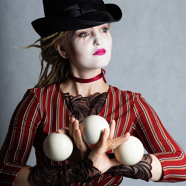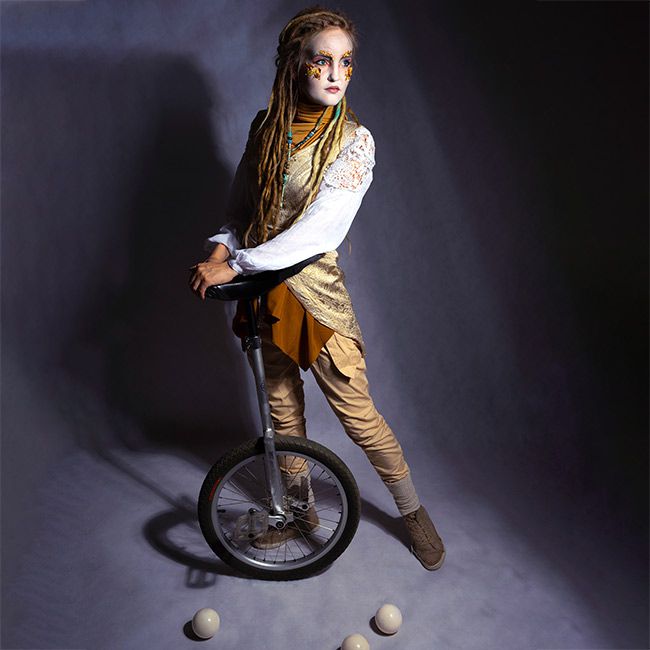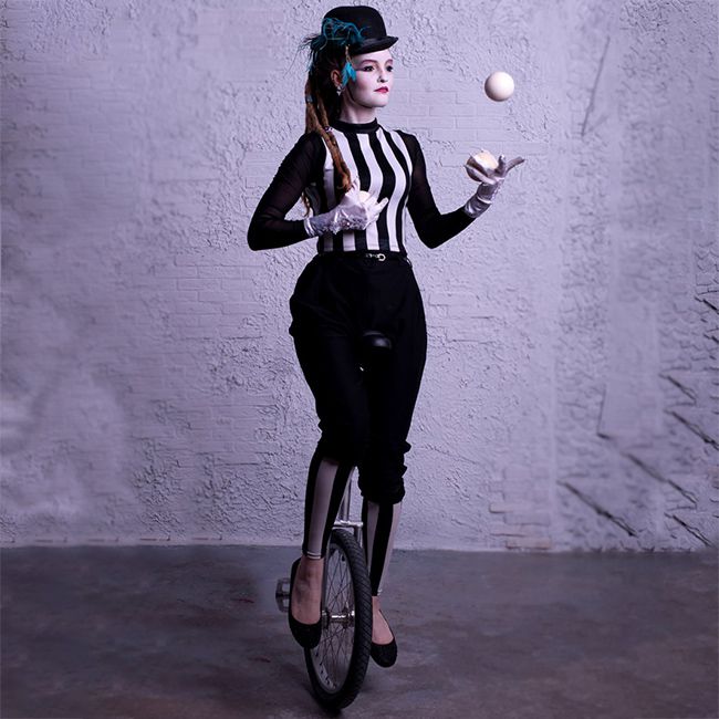 Available to perform a variety of circus stunts alongside her incredible unicycle shows, including LED costumes, fire skills, and juggling