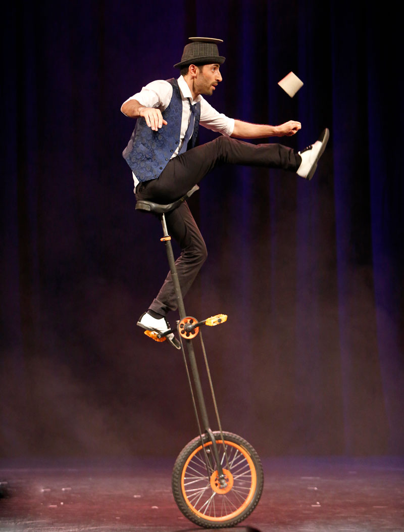 Two-time world record holder offering a unique interactive act with mixed unicycles and tricks