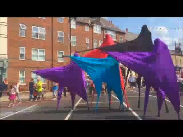 Extraordinary stilt walkers have a unique design enhanced by wonderful colours and music