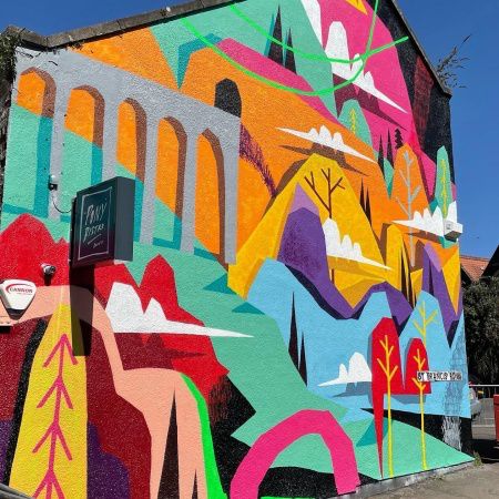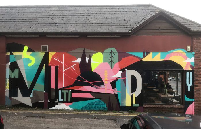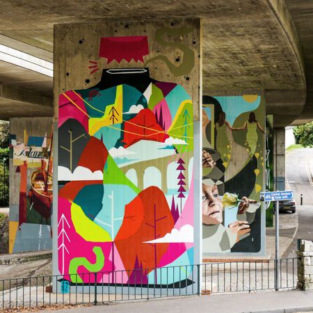 The urban artist's previous clients include the BBC, Urban Outfitter, Addidas and a variety of community engagement and education companies as well as numerous Festivals including Boardmasters and Nass Festival for which he has created the main imagery for.