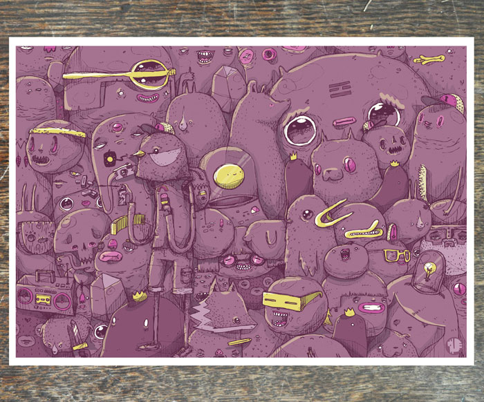 The unique street artist has a very modern and contemporary style thats takes inspiration from street art, comics, cartoons and child art. The modern illustrator’s work varies between hand drawn, painted, mixed media and digital illustrations which constantly varies his output.  His highly flexible approach means he can tailor his skills to accommodate the type of project the client desires.