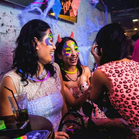 Our face painters use professional UV and matte paints which are water-based, non-toxic, hypoallergenic and highly pigmented so each design is super vibrant under not just UV light but in daylight as well! The perfect way to jazz up your event and ensure some incredible photos, our UV face paint artists will be a huge hit with your guests. To ensure you make the most of our body painters’ UV body art, you can also book UV lighting with us!