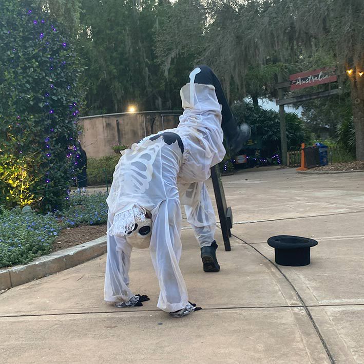 Ambiently dancing, contorting, and interacting with guests, our UV skeleton is a fantastic act for Halloween events for all ages