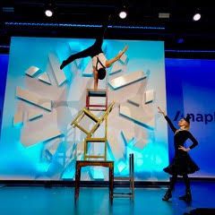 Our artist performs incredible handstands, balances and contortion positions whilst building a striking tower of chairs