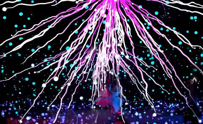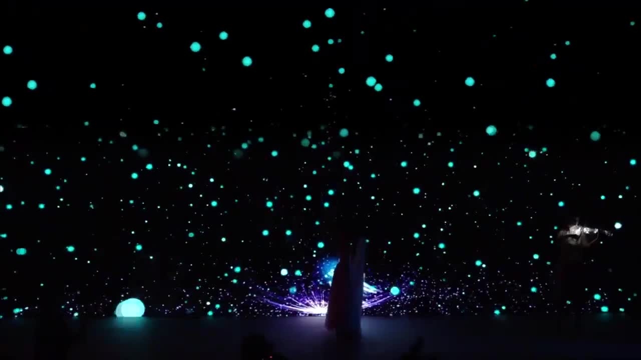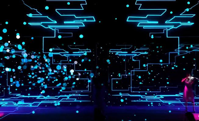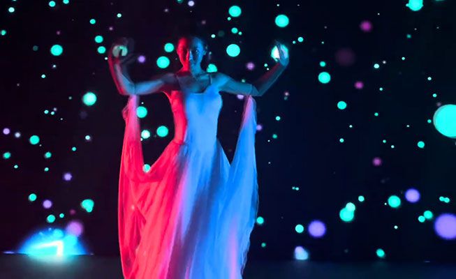 Using the latest in video mapping technology, this dancer interacts with the graphics on the screen in a show set to music