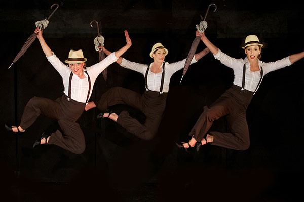 Each dance routine is brought to life with fantastic costumes and props and a sensational soundtrack. Our can can dancers will take to the stage with beautiful peacock coloured costumes; deep turquoise skirts and bodices, punctuation with gold ribbons and topped off with a stunning peacock feather fascinator. Our gangster theme girls start off in stylish black trench coats and bowler hats before revealing slinky black dresses hemmed with silver, elegant black gloves and plenty of jewels. For their singin’ in the rain performance our girls have their golf umbrellas at the ready and look utterly fabulous in fitted white shirts and high waist pin-striped slacks with braces.