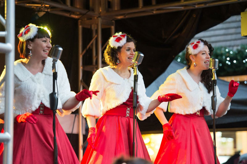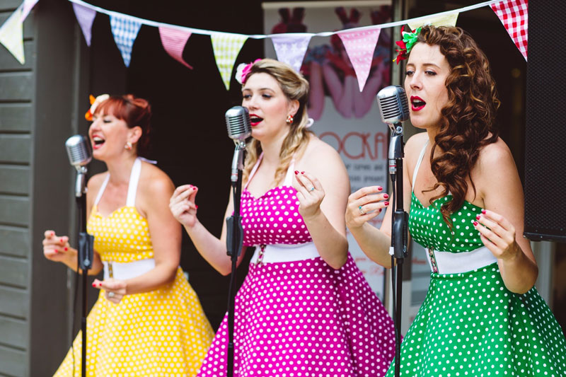 Some of their most popular line ups include performances alongside a male vintage band and bookings with their ‘trolley dolly’ act, especially designed for outdoor events such as music festivals or air-shows.