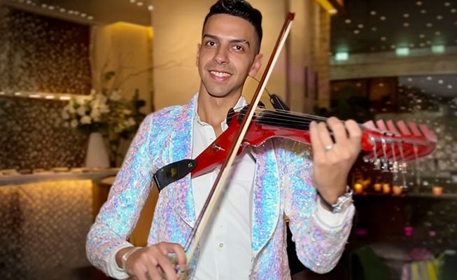 An internationally experienced violinist with performances across Egypt and Saudi Arabia, including luxury venues and five-star hotels