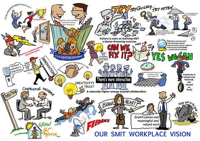 Our artist also offers an online conference scribe option. This technique creates presentations in real-time and offers much more audience engagement. Using a variety of techniques he can illustrate and reinforce information and messages. Unrelated ideas and new connections can be literally drawn together. All parts can be digitally supplied for future presentations.