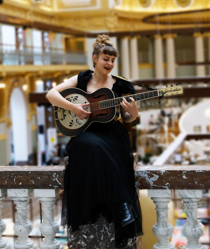 This duo is made up of a female vocalist who also plays the guitar, plus a virtuoso violin player