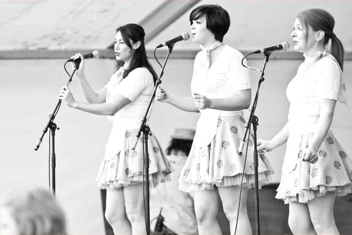 Our vintage harmony singers’ repertoire covers music from the 50s to the 70s. They play tribute to iconic groups like the Andrew Sisters with versions of some of their famous hits like ‘Boogie Woogie Bugle Boy’, ‘Rum and Coca Cola’ or ‘In the Mood’. These versatile vintage harmony signers also perform covers of The Crystals, The Dixie Cups, The Marcelettes, Queen and Martha Reeves and The Vandellas, among others. Check their full set list by clicking the tab above.