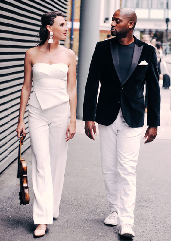 Dressed in a choice of beautiful black tie outfits, our classical crossover duo’s look fits perfectly with luxury venues and high-end events.