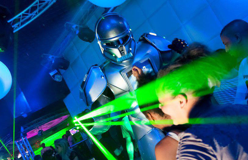 Complete with laser guns and CO2 cannons, as well as an LED screen on the chest which can display personalised videos, these robots are just what you need to make your function stand out from the rest.