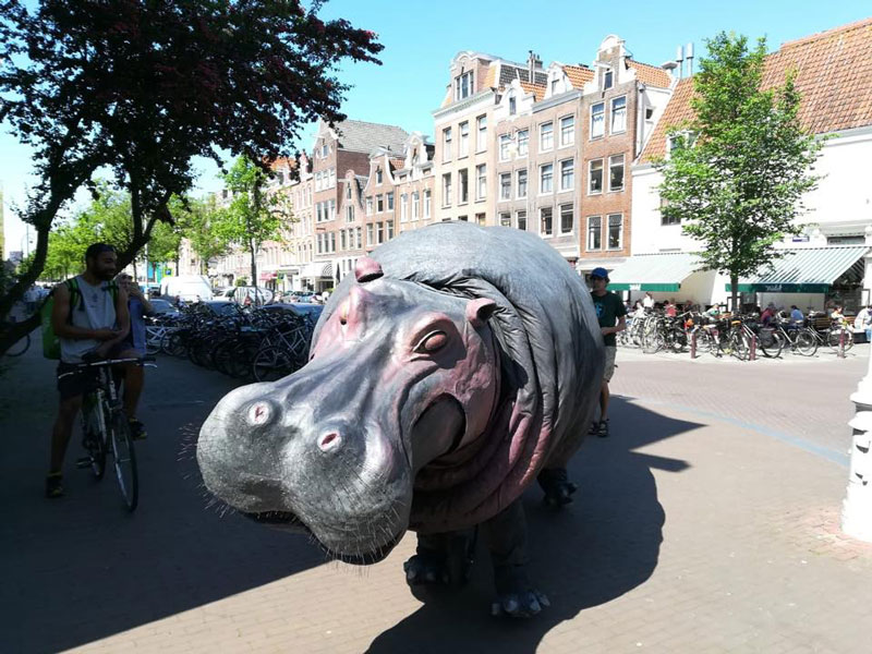 If you thought the zoo was the only place where you could find wild animals, we can prove you wrong! This walkabout event Hippo can be found anywhere: strolling the streets of your city, looking for food in your garden or just seeking attention in any corner!