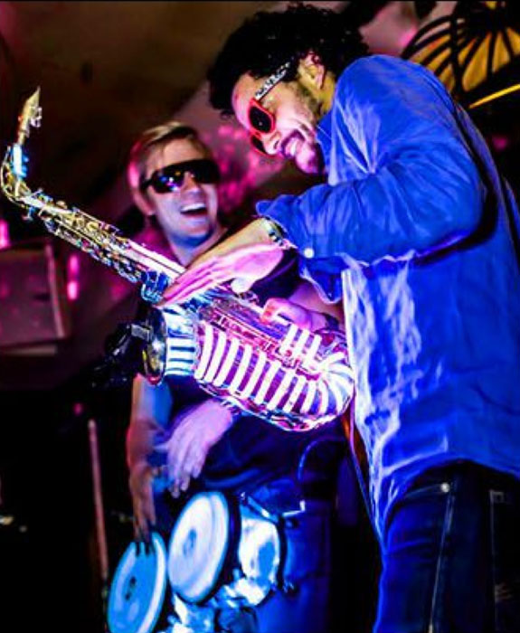 Performing on custom made LED instruments, our talented saxophone player and bongo percussionist not only make the ultimate double act; they can even synchronise their instruments to change colour in time with music or to match your venue's colour scheme. Also able to be hired alongside a range of other highly sought after nightclub musicians, the group have over 4000 international performances and 5 million youtube hits between them.