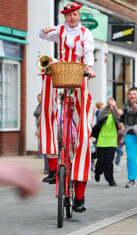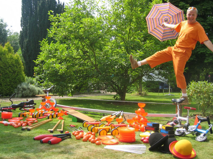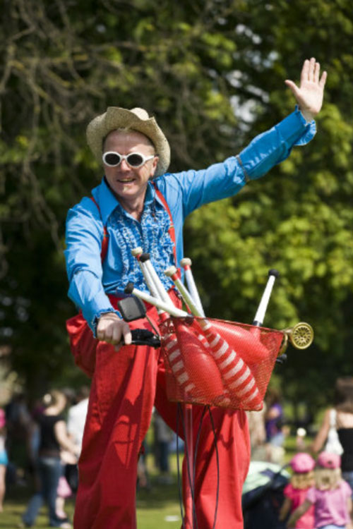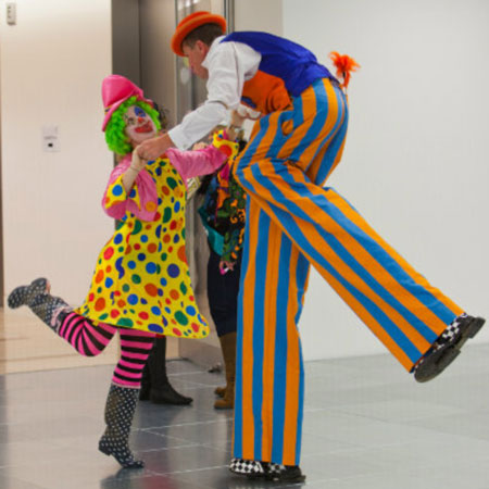 Our Walkabout Circus Entertainer can also be booked as a double act for brilliant stilt walking performances and comedy juggler shows.