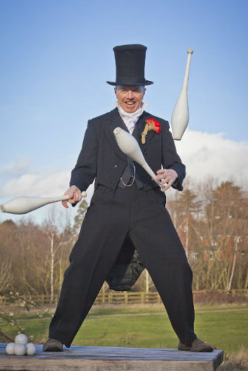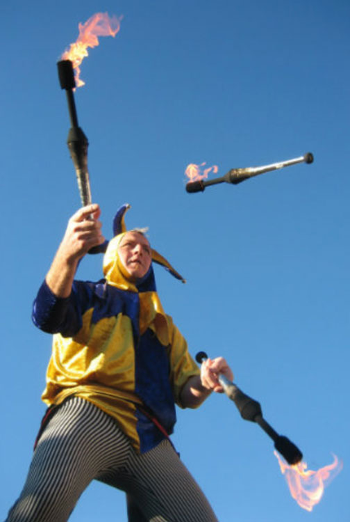 Performs comedy juggling and diabolo shows, glow and fire shows as well as walkabout entertainment as a juggler, juggling stilt walker and many different characters from Clown and Jester to Chef and Pirate as well as a Dapper Victorian Juggling Gentleman and Old English Bobby.
