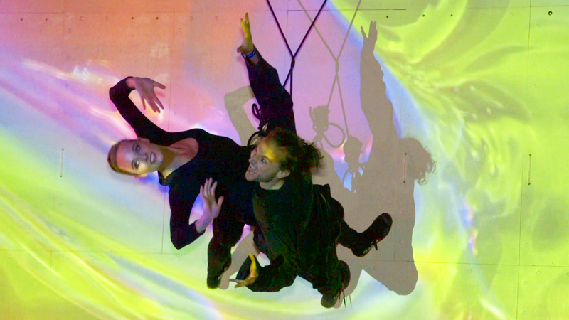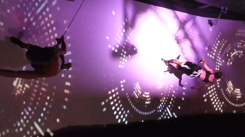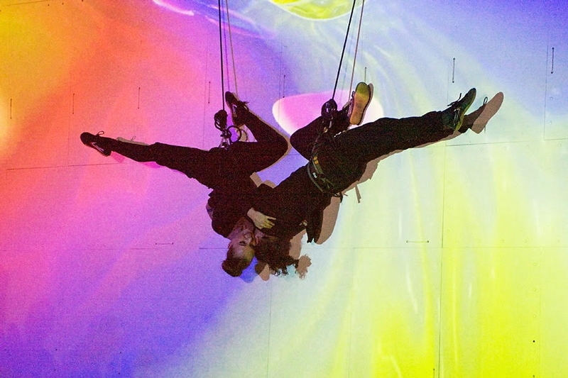 An extraordinary display of flawless technique and boundless creativity as two aerial dancers execute a unique wall walking routine