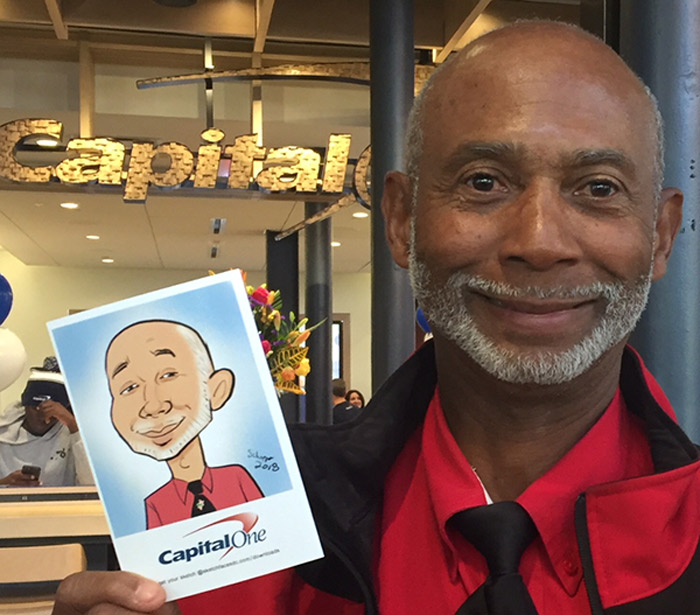 Digital caricatures allow full colouring, creative design, branding, on-site printing and sharing on social media